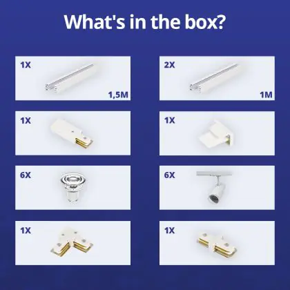 Complete Set 1-Fase Rail L 1,5 x 2 Meter Wit | incl. 6x Spot + GU10 2700K 3W Dimbaar + Eindkap, Voedingsconnector en L -Verbindingsstuk