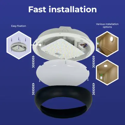 Noxion LED Bulkhead Pro V2 Wit 12/16/20W 2400lm - 830-840-865 CCT | 325mm - IP65 - Bewegings- en Lichtsensor + Ring Zwart