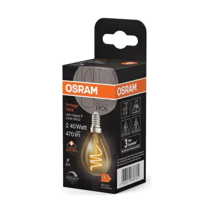 | Fabrikantnaam | Vintage 1906 LED CLASSIC A,B,P SLIM FILAMENT DIMMABLE 4.9W 922 Gold E1 | |